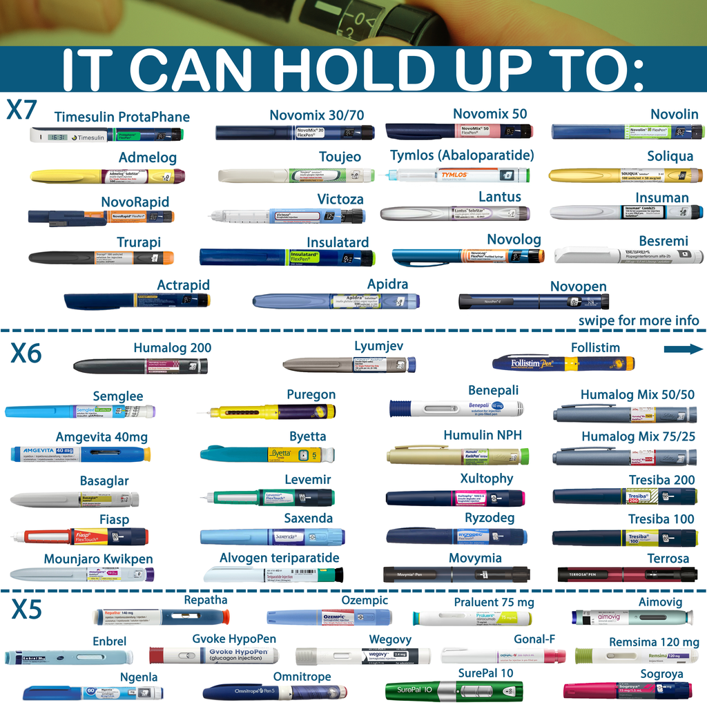 Beyond insulin and GLP-1 injections, the Nomad PRO is designed to safely store and carry over 30 types of refrigerated medicines.